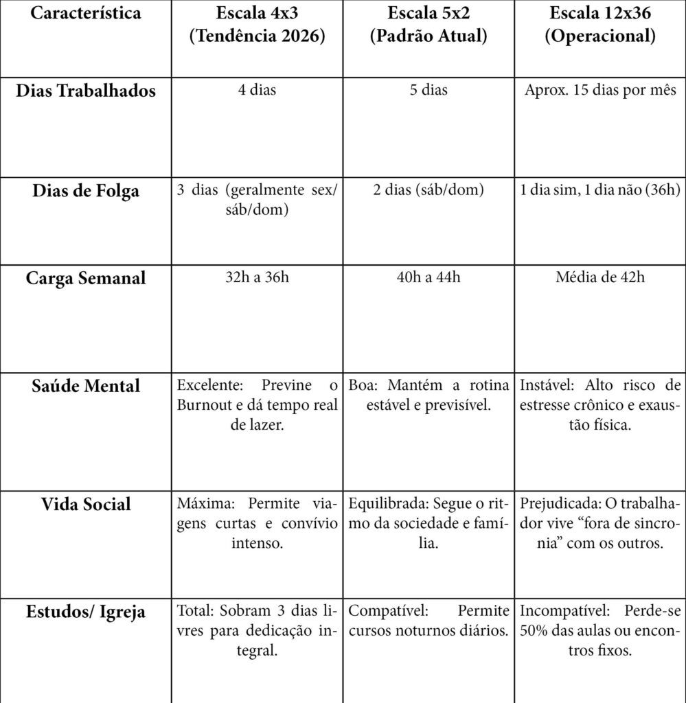 Os trabalhadores defendem uma jornada reduzida 5 x 2, A PEC 148/2015 (Redução Gradual), por outro lado, a deputada Érika Hilton propõe a PEC da Escala 4×3 (PEC 08/2025) e aqui traz o comparativo dos benefícios e malefícios aos trabalhadores: